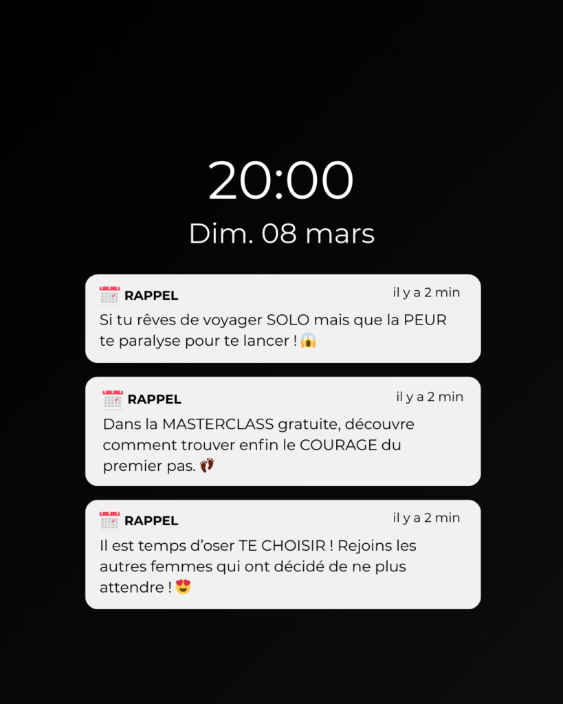 C’est un espace dédié au voyage solo au féminin, où l’on trouve ensemble le courage d’oser ce premier départ, même quand on n’a jamais voyagé seule. Pas à pas, tu découvres qu’il est possible de voyager seule, confiante, préparée et libre.